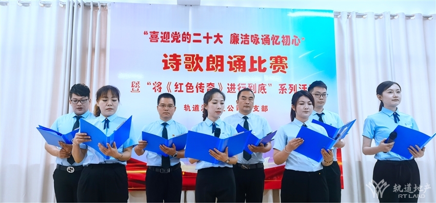 軌道混凝土公司黨支部書記黎波說:“本次詩歌朗誦比賽內(nèi)容新穎、朗誦形式多樣、語言表達能力強,總體水平非常高。以廉潔詩文朗誦讓廉潔文化入腦入心,是推動公司黨支部紅色文化建設(shè)的重要舉措,也是加強黨員干部反腐倡廉教育的有效手段”。軌道地產(chǎn)集團公司紀(jì)檢監(jiān)察室副主任盧邦超親臨活動現(xiàn)場,并表示:“希望以后能多組織此類活動,增強各公司各部門團隊精神和協(xié)作能力?!?/span>