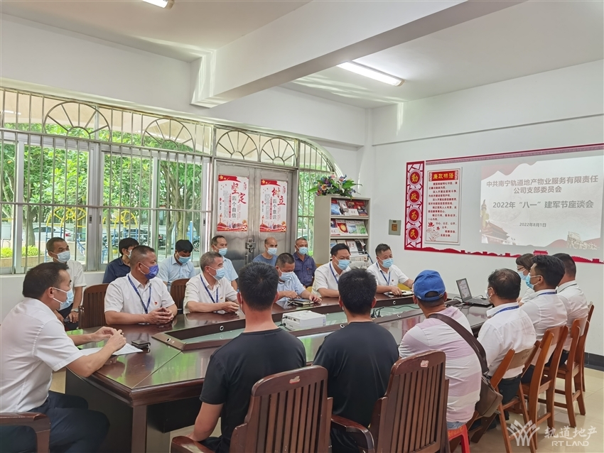 轉(zhuǎn)眼又到“八一”建軍節(jié)。曾經(jīng)的硝煙里,先烈們匯聚成浩蕩鐵流,才迎來白鴿飛翔。在這個特別的日子里,軌道地產(chǎn)物業(yè)公司在南湖公務(wù)員小區(qū)會議室召開退伍軍人座談會,軌道地產(chǎn)物業(yè)公司黨支部書記、董事長李院海和公司各項目退伍軍人歡聚一堂,共慶建軍節(jié)。