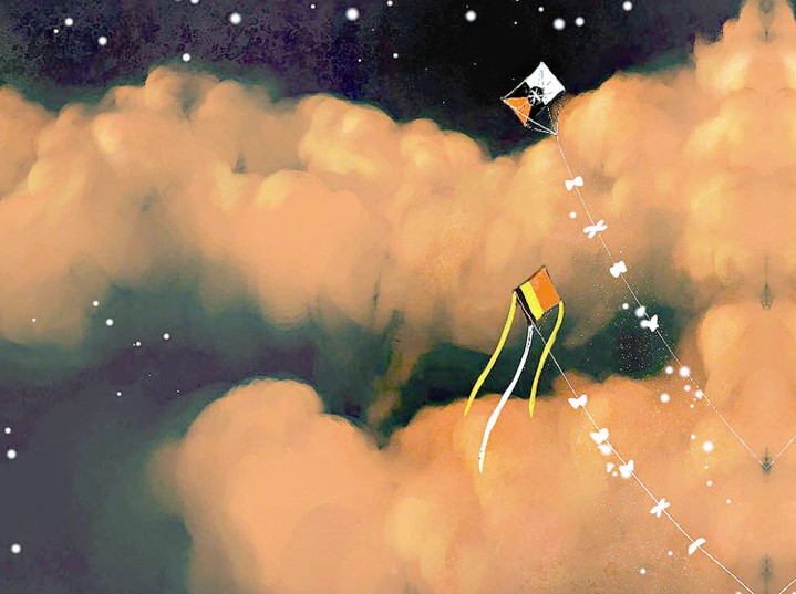 小囡囡就這么仰望著那個(gè)高掛在天上的風(fēng)箏,她也不去追,不去搶。因?yàn)榭粗L(fēng)箏還在天上,心里就還有夢(mèng)。如果把它拿在手上,可能,她就再也不會(huì)做夢(mèng)了?! ?